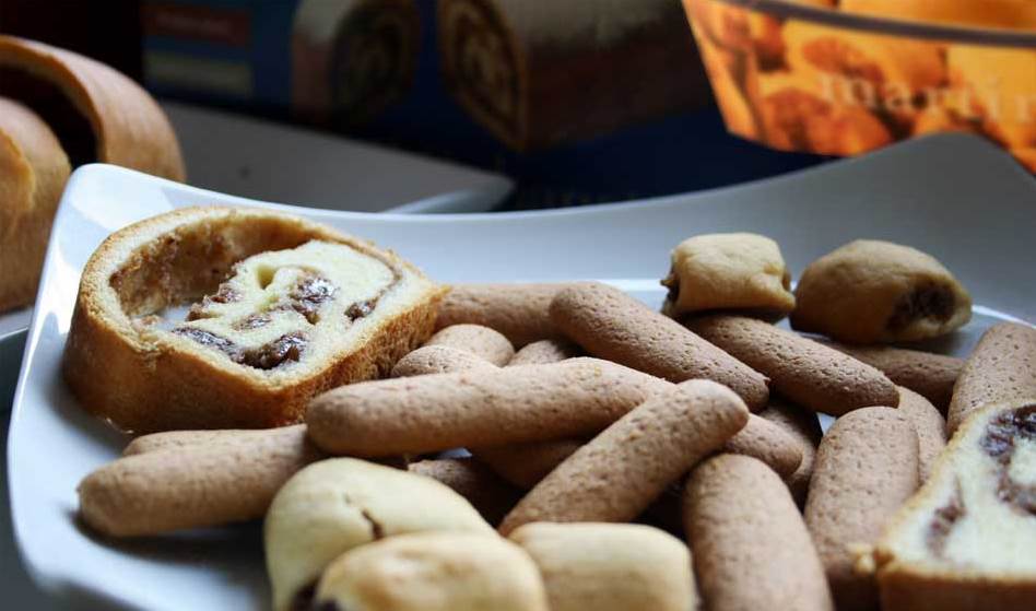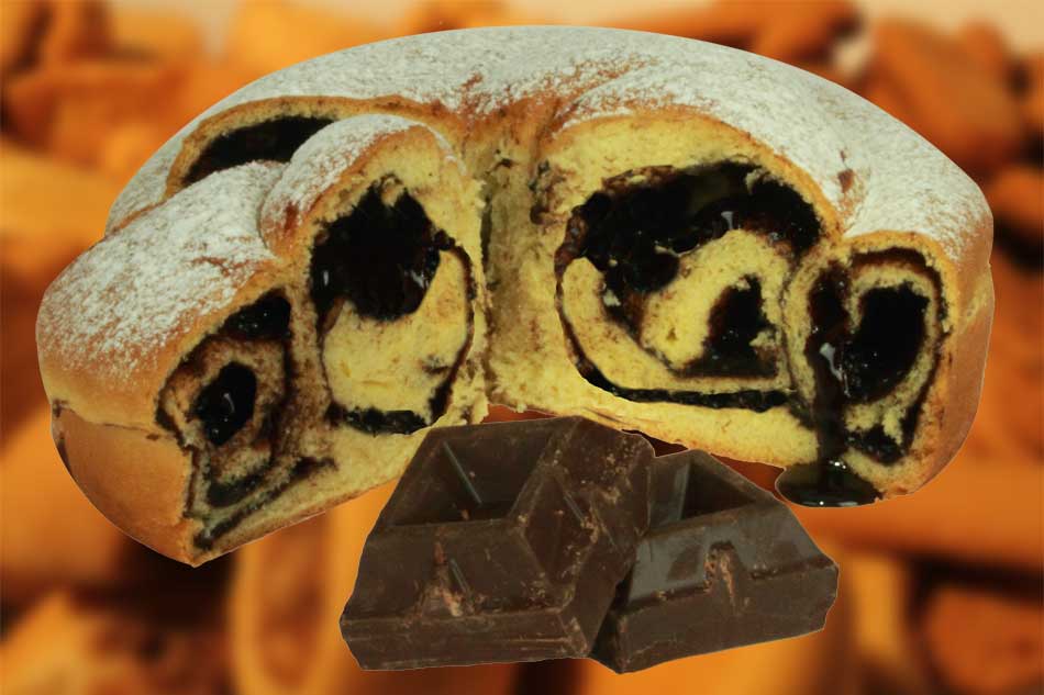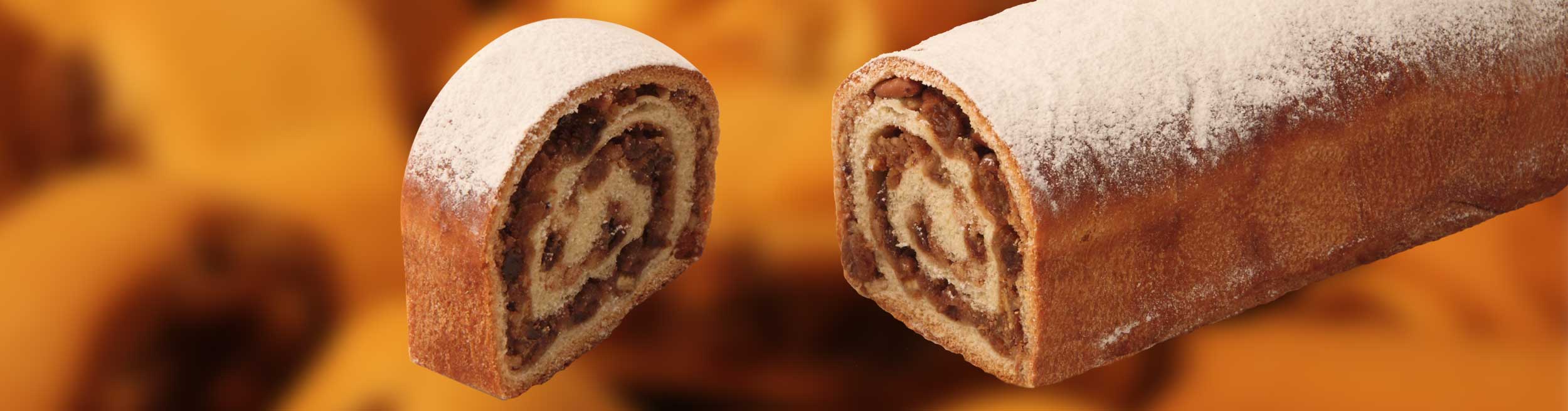 Prodotto dolciario da forno, lievitato con ripieno a base di noci, scadenza a 180gg.